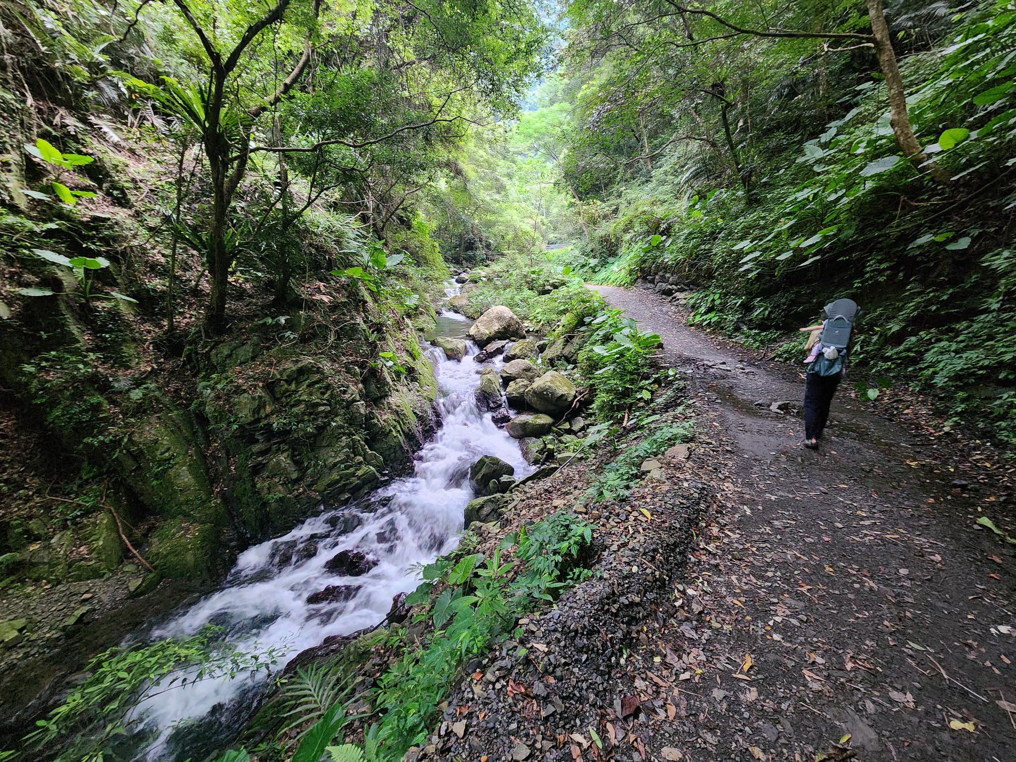 步道沿路都沿著小溪前進,雖然沒有壯麗的景色,但當作輕鬆的賞溪散步挺悠哉的,而且深山的水就是清澈,看了很舒服。寶寶依然看到水就激動地啊啊啊四處指。