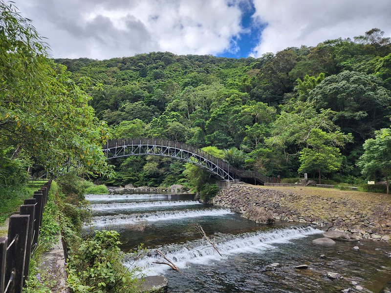 過橋後就是蝴蝶公園和水圳步道,也是我最喜歡的區域!我一直非常喜歡旁邊有水圳或小溪流的路徑,蝴蝶公園的水圳步道完美地符合我的想像:平緩好走的道路,清澈水圳一路相伴,仔細看還會發現很多魚苗在裡面悠游,走起來非常舒適愜意。